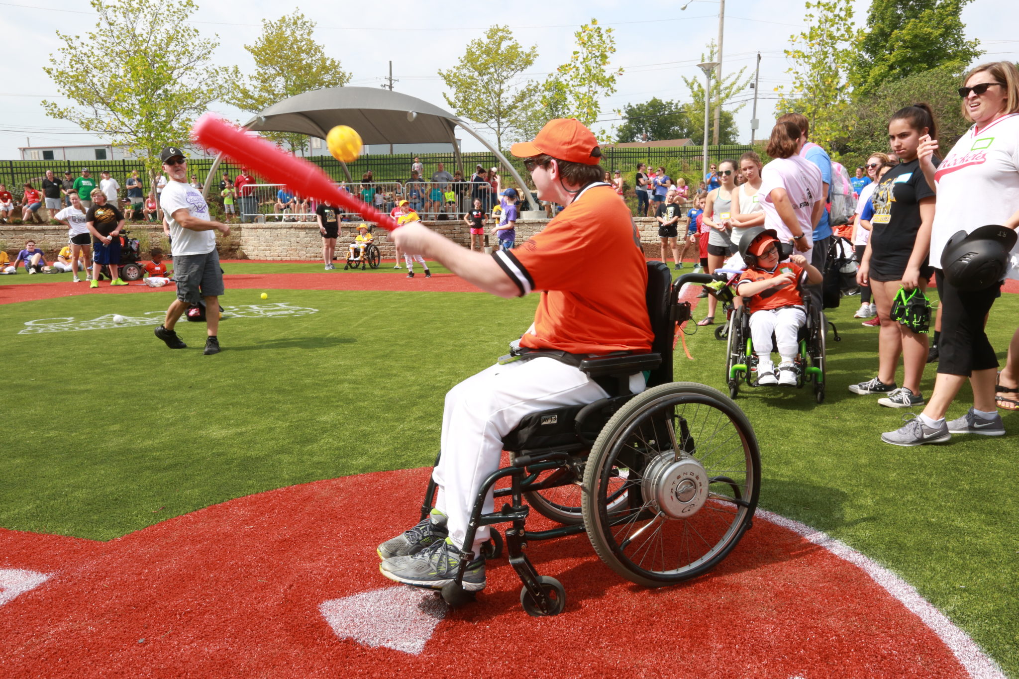 Roe recalls other challenges the first few years of Challenger Baseball at Ranken Jordan. They started on a grass field that wasn’t fully accessible. The grass made it difficult to use a rolling walker or wheelchair. But Roe proves where there’s a will, there’s a way.